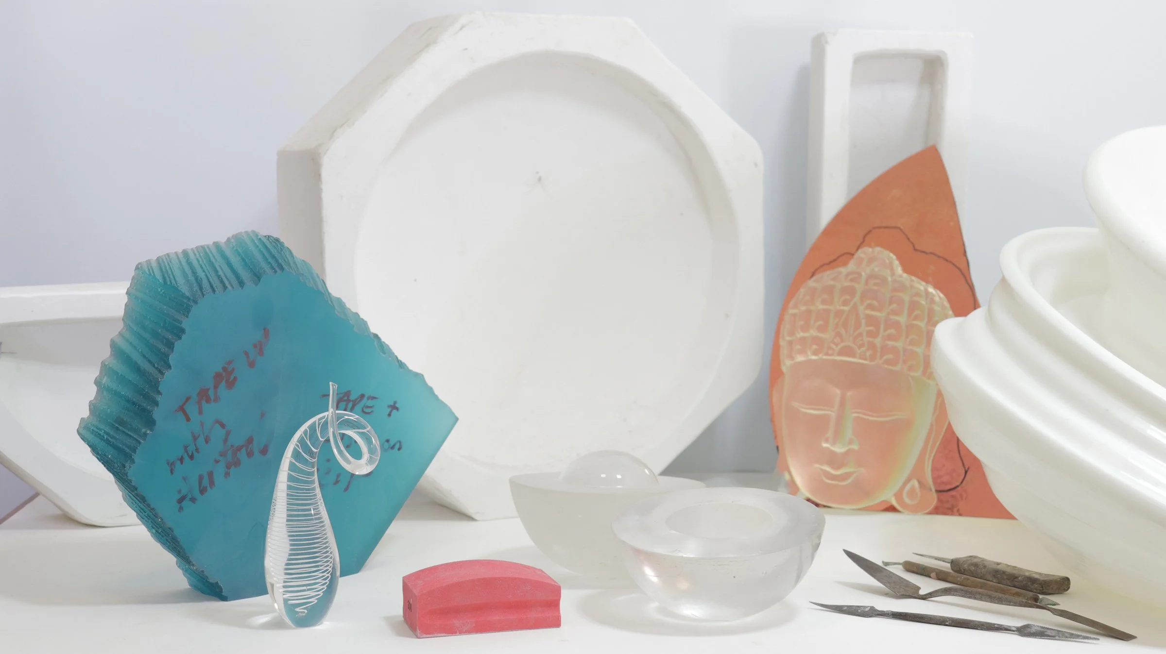 Before glass ever sees the heat of a kiln, we need a mould that can hold the idea in place. Everything begins with a pattern, shaped by hand in soft materials like clay, wax, or foam. These hand-built forms give us total control over shape, texture, and line.